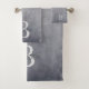 Conjunto moderno abstracto de toallas de baño rústicas. Elegantes colores grises y blancos. Diseño artístico. Moderno y elegante accesorio de baño. Puede personalizar este diseño para usted o para un ser querido cambiando Su nombre. Se incluye una plantilla de texto para personalizar con su monograma o texto. También puede borrar el monograma de muestra si desea solicitar las toallas sin texto.