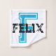 Nombre simple que significa letras texto con toallas de estilo deportivo para el nombre Felix que significa feliz ganador. Bendito con el éxito y la buena fortuna. Hay otros estilos de significados de nombres disponibles o personalizados este juego de toallas con tu propio nombre y lo que tu nombre significa para ti y tu cántico o equipo o nombre repetido. Ideal para los aficionados o jugadores que tengan el blanco, el azul ciano brillante y el azul oscuro como colores de equipo. Diseñado por www.mylittleeden.com y namesense en Zazzle.