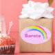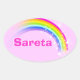 Los niños con el nombre de los stickers de la identificación del arcoiris son personalizares con su propio nombre. Este ejemplo dice: "Sareta". Un pegatina agradable perfecto para la escuela. Diseñado exclusivamente por Sarah Trett.