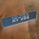 Placa divertida del escritorio del arrancador de la conversación para su decoración de la oficina. Elegante y bonito se descoloró el color de los azules añiles en el fondo. El texto dice que "pregúnteme acerca de mi perro." Diseño moderno y de moda.