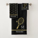 Monograma Nombre Tennis Racket Bath Set de toalla de baño negro de oro