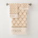 Monograma de este hermoso juego de toallas de baño de color champán. Agregue su nombre o iniciales. El conjunto incluye una toalla de baño, una toalla de mano y un paño de lavado. Se pueden comprar como conjunto o por separado.
