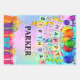 Feliz cumpleaños 3 papel de envoltura de hojas planas con globos, regalos,