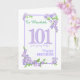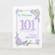 Una tarjeta de cumpleaños 101 muy bonito para que el personalizar con el nombre del destinatario. Hay conglomerados de flores Phlox azules y violetas alrededor del estrecho borde violeta, pintado a mano en acuarelas. El saludo de portada es: ¡101 años jóvenes hoy! FELIZ CUMPLEAÑOS!' sobre un fondo blanco, de textura ligera, de tejido de cesta y el número 101 está lleno de un patrón de gingham de comprobación que coincide. Hay mucho espacio en la parte superior para agregar el nombre del destinatario y el mensaje interior también se puede personalizar.