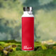 Esta botella de agua aislada se muestra en blanco con un color de acento rojo y una muestra de nombre personalizada. Personalizar este elemento y cambia el nombre del ejemplo al tuyo.