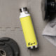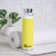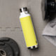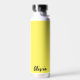 Esta botella de agua aislada se muestra en blanco con un color de acento amarillo soleado y una muestra de nombre personalizada. Personalizar este elemento y cambia el nombre del ejemplo al tuyo.