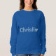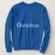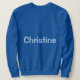Esta es una sudadera básica para mujeres azules. Puedes practicar actividades al aire libre con la comodidad de este clásico suéter de cuello blanco. Es afelpada y resistente a la vez; un verdadero básico todoterreno para cualquier armario que se precie. Seleccione un diseño del mercado de Zazzle o personalizar para hacerlo propio! La sudadera azul real es personalizada con el nombre de una mujer, Christine. El nombre es un color Chambray Comfort Color azul claro. Christine se llama en la parte delantera y trasera de la sudadera. Puede reemplazar el nombre haciendo clic en el vínculo Personalizar. La sudadera es fiel al tamaño. La camisa es una mezcla de poliéster de algodón. El suéter tiene mangas fijadas y un cuello con doble aguja cosida, agujeros de blindaje y banda inferior para una durabilidad a largo plazo. La tela es importada. Las instrucciones para el cuidado de la tela son lavado a máquina frío y secado bajo.