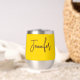 Añade tu nombre en este diseño de texto púrpura sobre fondo amarillo.