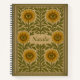 Mystical Sunflower Eye Design - Custom Name Notebook con estilo botánico vintage Este encantador diseño presenta un arreglo simétrico de girasoles dorados con ojos surrealistas y vistos en sus centros, rodeados de frondosas viñas verdes. La paleta de colores tierra y la disposición de inspiración vintage crean una estética mística y encantadora de la naturaleza. Personalízalo con cualquier nombre para convertirlo en el suyo propio o regalarlo a alguien que aprecia el simbolismo espiritual, el arte folclórico o los diseños florales únicos.