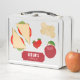 Un diseño único que muestra un almuerzo escolar saludable para niños. Un delicioso sándwich, manzana, galletas, fresas y una manzana. Personalizar el nombre y hazlo propio.