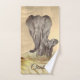 Toalla de mano única y artística, con una madre del elefante Watercolor y su bebé, sobre un fondo falso de arena, y texto personalizado, nombre sobre el patrón de cebra marrón gradiente. Modifique o elimine fácilmente el texto haciendo clic en el botón Personalizar.