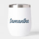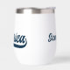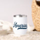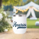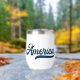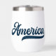 Celebra América con este tumbler de vino patriótico que incluye la palabra 'América' en un guión gráfico retro azul marino en un lado y tu nombre en el otro. Perfecto para el Día de la Memoria, 4 de julio, días de diversión de verano o nostalgia de la vintage Americana durante todo el año.