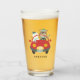 Este lindo y colorido vaso de personalizado presenta un caprichoso ilustracion con temática invernal de un adorable oso y un muñeco de nieve manejando en un auto rojo. Personalízalo con tu nombre en un tipo de letra retro. ¡Buena idea de regalo!