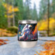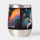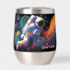 El colorido espacio astronauta moderno nombre personalizado Tumbler de vino térmico presenta un astronauta flotando por el espacio exterior con planetas y batidos coloridos y personalizado con su nombre en tipografía de escritura moderna. Perfecto como regalo para los amantes del espacio, familia y amigos por cumpleaños, Navidades, vacaciones, Día del Padre, hermano, esposo, compañero, mejores amigos, compañeros de trabajo y más. Diseñado por ©Evco Studio www.zazzle.com/store/evcostudio