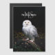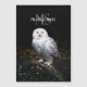 Fotografía de retrato animal de majestuosa lechuza de nieve de pie en una rama con un nombre personalizado personalizable arriba.