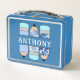 Nombre personalizado del alumno Lápiz Blue Metalizado Lunch Box, puede personalizar el nombre y el texto.
