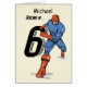Un pequeño superhéroe se convertirá en seis muy pronto. Sorprende a un chico maravilloso con este superhéroe fuerte usando máscara roja, guantes y botas y un traje azul. Él viene rápido con tus deseos de cumpleaños.