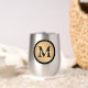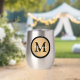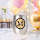 Personalice este botón de aspecto metálico dorado delineado en negro con cualquier nombre y monograma personalizado.