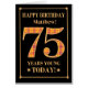 Una tarjeta de cumpleaños 75 de moda para el personalizar con el nombre de la relación del destinatario. Los números, 75, están llenos de un patrón amarillo, naranja y rojo tartán y delineado en efecto oro. El mensaje de la portada es, 'FELIZ CUMPLEAÑOS, seguido de un espacio para su personalización, 75 años jóvenes hoy en día', con letras de efecto dorado sobre un fondo negro. Hay estrellas de efecto dorado a cada lado de "HOY!" y en las esquinas del delgado borde dorado-efecto. Por favor, siéntase libre de personalizar el mensaje interno o borrarlo si lo desea.