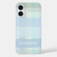 Estuche personalizado para iPhone personalizado con un nombre si lo desea. Interpretación original pintada a mano de la marca amada, plateado, tartán, diseño de gingham. Pastel silenció los matices de moda de azul polvo, verde salvia, cian. Moderno accesorio abstracto a rayas premidas femenino a la moda femenina para proteger tu celular. O una gran idea de regalo creativa para ella , apta para muchas ocasiones y celebraciones, como cumpleaños, graduación, aniversarios, Día de la Madre, Día de San Valentín, feriado de Navidades, etc. Un regalo bonito, hermoso y útil por debajo de los 40 dólares para ella.