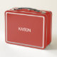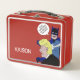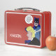 Caja de comidas personalizada para niños, cajas de texto con nombre personalizado para adultos, bocadillos contra Trump Slap Gracioso, retro Metalizado de vuelta a la escuela, comida para picar trompeta de oficina, humorista político burlón abofeteado, cara personalizada rojo, bocadillo azul marino negro, acero blanco plateado inoxidable moderno, estética antigua vintage de mediados de siglo,