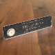 Placa de identificación de mármol de la mirada con el Rótulo del escritorio del reloj. Texto en el oro pálido (#E6BE8A) y mostrado con el reloj.