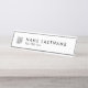 Personalizar este moderno y elegante escritorio Minimalista blanco y limpio de diseño con placa de nombres con fuentes en negro. Reemplace la imagen de "su logotipo aquí" por la imagen de su logotipo. Este plato tiene acabado metalizado plateado, se puede cambiar esto a otras dos opciones, a acabado metalizado de oro negro o rosa.