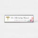 Placa de identificación médica floral rosada del escritorio del caduceo
