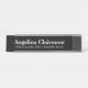 Placa de identificación personalizada del escritorio con cargo de encargo o nombre de compañía profesional. Haga sus los propios con un nombre de encargo y una función de trabajo formal como el productor ejecutivo, encargado, CEO, médico. Plantilla elegante de la tipografía. Perfeccione para el jefe del negocio, el empleado de oficina, los compañeros de trabajo, los colegas, el coche, el profesor de escuela, el decano, el director, los oficinistas, el agente inmobiliario, el director, el dentista, el productor, el recepcionista, el abogado, el abogado etc. disponible en plata, el oro color de rosa y el color negro. Añada su propio logotipo opcionalmente.