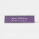 Esta elegante placa de nombres es fácil de personalizar utilizando la plantilla de personalización en línea antes de realizar el pedido. Hay campos de texto para un nombre y un título de trabajo (o un nombre y un departamento/equipo si lo prefiere). Si desea realizar ajustes avanzados, como cambiar el fondo morado oscuro a un color de la empresa, haga clic en la opción "Editar usando la herramienta de diseño" para "más Personalizar". La placa con el nombre se puede elegir entre dos estilos (como plato de escritorio o como placa con el nombre de la puerta) y una selección de acabados y tamaños de color.