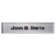 Placa de nombres de aspecto industrial muy fresca con fondo de diamante de acero brillante y su nombre con letras negras con bordes y tornillos audaces. Sólo la placa con el nombre para una impresión real.