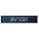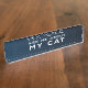 Placa divertida del escritorio del arrancador de la conversación para su decoración de la oficina. Elegante y bonito se descoloró el color de los azules añiles en el fondo. El texto dice que "pregúnteme acerca de mi gato." Diseño moderno y de moda.