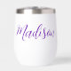 Un vaso de bonito personalizado de monograma morado para un chica que ama los regalos simples y escritos a mano. Hermoso guión cursivo en el costado de la botella que explica su nombre en una tipografía elegante.