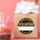 Etiqueta de nombre de voluntario de eventos con elegante diseño de oro y negro con estrellas y un espacio donde escribir nombre, para recaudación de fondos o gala sin fines de lucro u otro evento.