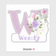 Personalice cualquier elemento con un Pegatina de recorte de diseño floral Nombre e Inicial. El nombre de ejemplo es Wendy.