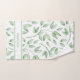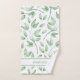 Moda y color de agua rústico Patrón de hojas verdes con nombre familiar en toalla de mano blanca.