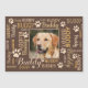 Brown Regalo personalizado de o para tu perro. Personalizable con la imagen de tu perro o gato con el nombre de tu perro o gato. Cuando cambies el nombre de Buddy por el de tu propio mascota, cambiará todos los nombres tipográficos al mismo tiempo. Tipografía de arte en la nube de palabras. Diferentes tipos de letra y estilos en huellas de pata marrón y beige que se ven estupendos con una casa de estilo rústico granero. Diseño moderno y de diseño. Todo es personalizable. Puede cambiar el color de fondo marrón, cambiar el estilo de fuente, el tamaño y el color. La plantilla de la foto es de un recuperador marrón claro/dorado.