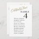Tiempo de celebración! en un guión elegante para ayudar a sus huéspedes a encontrar su mesa con estas elegantes y modernas tarjetas de asiento con nombres de invitados. Tarjetas de doble cara para que los huéspedes puedan ver sus nombres desde ambos lados, delante o detrás. Fondo blanco y texto negro, y número de tabla con una sombra de caída para efecto. Varias opciones de color. Tener todos los números de tabla en el mismo color o mezclar colores según el tema de color del evento. La tarjeta se imprime en la parte delantera y trasera (doble cara). Si tiene alguna pregunta de diseño, sólo tiene que enviar una charla y estaremos encantados de asistirle.