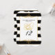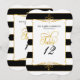Si está buscando una solución elegante y económica para los números de mesa en la recepción de su boda, fiesta de compromiso o cualquier otro evento formal, estas tarjetas son un gran diseño. Este diseño tiene el nombre de recién casados y la fecha de la boda en la parte superior (puede poner la información que desee si es un evento diferente, como una fiesta de aniversario, evento comercial u otro evento de etiqueta). Puede personalizar tantas mesas como necesite; simplemente haga clic en el área del template, escriba el número de mesa (o nombre de la mesa) y colóquelo en su carrito de compras. Repita las veces que sea necesario. Un fondo moderno a rayas anchas en blanco y negro con un borde dorado delgado añadido se combina con un elemento divisor de florituras dibujadas a mano y la palabra "Mesa" en tipografía de caligrafía con florituras elegantes en dorado con brillo falso.