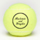 Bolas de tenis personalizado personalizadas con nombres personalizados o texto propio en un divertido tipo de letra de guión retro y simple monograma de racquet de tenis con un borde circular alrededor de él. La pareja de tenis o el equipo de dobles apreciarán estos modernos bailes monogramados.