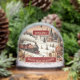 The Christmas Train Snow Globe theme brings a nostalgic, magical, storybook charm to holiday decor. The design features this whimsical train burgundy and pristine snow palette for adornment. The text "North Pole" and quote "Santa's train, no refunds!" can be personalized.