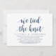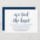 Guión moderno en tema de azul marino clásico, tarjeta de invitación de elopamiento de boda (Nos Casamos). Es perfecto para su cena de elopamiento de boda casual junto al lago, baile y fiesta.
