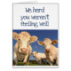 Nos enteramos de que no te sentías bien con el humor de una vaca divertida y esperamos que te ponga en buen estado para que te recuperes pronto. Gracioso humor animal con un rebaño de vacas. Buena carta de un grupo, familia u oficina llena de gente.