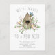 Tarjeta postal de anuncio de mudanza de nuevo nido rústico una casa de pájaros de madera con pájaros.