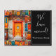 Te has mudado y quieres informar a tus amigos. Hazles saber con esta tarjeta postal única y colorida de anuncio de mudanza que presenta mi popular collage "Puertas del Mundo" como fondo y letra a mano. Fácilmente personalizable con tus propios nombres, dirección e información. Foto y diseño por TK Goforth y firmado por el artista. Todos los derechos reservados. Otros artículos con este diseño, incluyendo etiquetas de dirección de devolución y franqueo, se pueden encontrar en mi Colección de Nuevo Hogar y en mi tienda Zazzle: