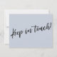 Mantén a tus amigos y familiares al día con tu nueva dirección usando estas sencillas y elegantes tarjetas de invitación. Puede insertarlas en sus correos temáticos sobre el boda o compartirlas en persona, según lo considere oportuno. Tanto si eres recién casado como si solo quieres un diseño único para que tu tribu sepa cómo encontrarte, esta carta es lo suficientemente versátil para cualquiera. Presenta gráficos de tipografía de bonito que dicen "Nos hemos mudado" en la parte delantera y "¡Manténganse en contacto!" en la parte posterior, usando un tipo de letra de escritura moderno, informal y manuscrita. Utilice los campos de plantilla para agregar todos sus propios detalles para personalizar este diseño para su propio uso. Si desea cambiar la bonito, el tipo de letra simple sans-serif que utilizé para el texto editable, o desea mover algunas líneas a otro lugar, haga clic en el enlace para personalizar de la tarjeta. El tipo negro se colocó sobre un fondo azul polvoriento editable; puede cambiarlo a cualquier color que desee. // 90 //