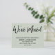 Mantén a tus amigos y familiares al día con tu nueva dirección usando estas sencillas y elegantes tarjetas de invitación. Puede insertarlas en sus correos temáticos sobre el boda o compartirlas en persona, según lo considere oportuno. Tanto si eres recién casado como si solo quieres un diseño único para que tu tribu sepa cómo encontrarte, esta carta es lo suficientemente versátil para cualquiera. Presenta gráficos de tipografía de bonito que dicen "Nos hemos mudado" en la parte delantera y "¡Manténganse en contacto!" en la parte posterior, usando un tipo de letra de escritura moderno, informal y manuscrita. Utilice los campos de plantilla para agregar todos sus propios detalles para personalizar este diseño para su propio uso. Si desea cambiar la bonito, el tipo de letra simple sans-serif que utilizé para el texto editable, o desea mover algunas líneas a otro lugar, haga clic en el enlace para personalizar de la tarjeta. El tipo negro se colocó sobre un fondo verde de salvia de luz editable; puede cambiarlo a cualquier color que desee. // 90 //