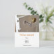 Una tarjeta postal para anuncios de nuevos hogares con una fotografía de cerca de una cerradura de puerta vintage y llave. El texto se puede cambiar para adaptarse a la ocasión, por ejemplo, una fiesta de inauguración de casa.