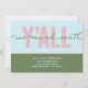 Esta emotiva tarjeta de invitación exuda el encanto del sur con su alegre y audaz proclama "Y'ALL nos mudamos al sur". Las grandes letras rosas, adornadas con una textura rústica y sutil, están en el centro y en el frente, capturando la vista y evocando la calidez y hospitalidad del Sur. Debajo, una serena banda de campos de olivo verde el diseño, lo que proporciona un contraste sereno y terrenal con el mensaje anterior. El diseño de la tarjeta equilibra perfectamente la ligereza con la elegancia, lo que hace que sea una forma deliciosa de compartir la noticia de un movimiento con amigos y familiares.