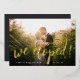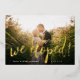 Nuestra moda y modernas invitaciones bodas son la manera perfecta de hacer que amigos y familiares sepan de su fuga, ceremonia secreta o boda privado. "¡Nos eludimos!" está colocado en Relieve metalizado dorado con letras de pincel de estilo manuscrito en tu foto favorita horizontal o orientada al paisaje. Personaliza con tus nombres y fechas de boda, así como un mensaje personal en el reverso.